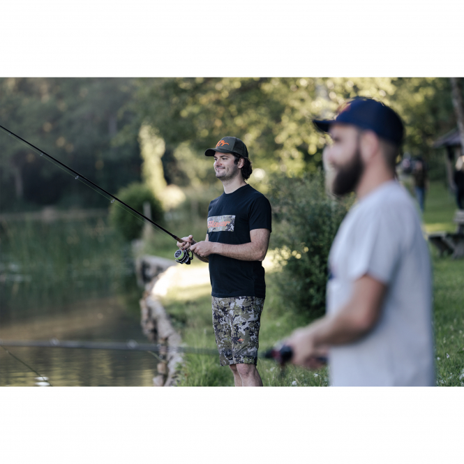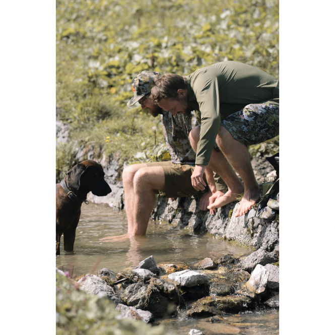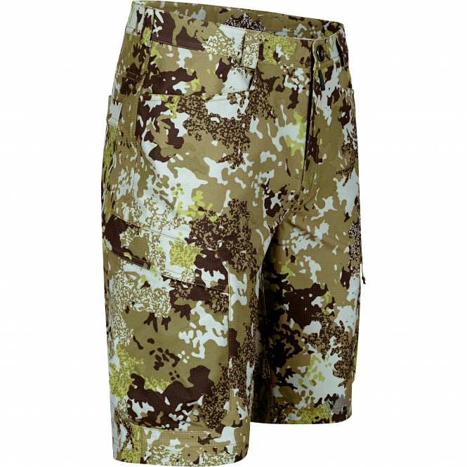 Sporty functional shorts for warm hunting days in the field or off the beaten track. The innovative micro-perforated fabric ensures constant ventilation and an optimal body climate, even during intense exertion. The shorts adapt to every movement and are comfortable to wear. With two front pockets and two leg pockets. Colour: camouflage.