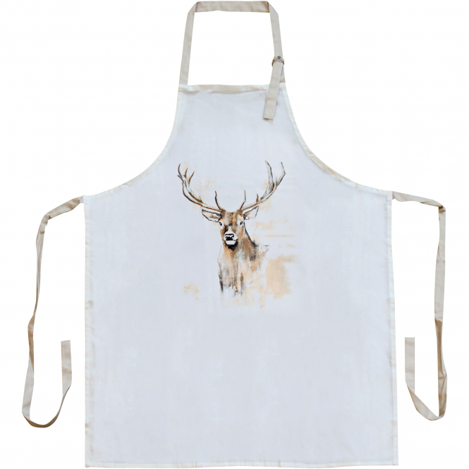 Apron from the ‘Red deer’ series. Neck loop: 65 cm (adjustable with 2 metal rings). Hip loops: 80 cm. Dimensions: 85 x 70 cm.