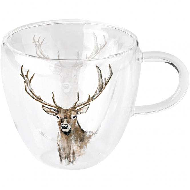 Glass mug from the ‘Red deer’ series. Made from double-walled glass. Capacity: 200 ml. Ø: 10 cm, height: 9.5 cm.