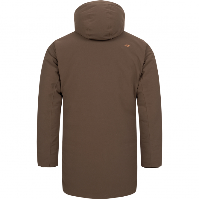 Thick down jacket in parka length for optimum warmth retention and maximum comfort with low weight. The two-layer membrane is waterproof, windproof and breathable at the same time. Additional water resistance thanks to DWR treatment. 3D down chambers at the centre back trap the warmth and adapt perfectly to the contours of the body. With detachable, adjustable 3-point hood and several practical pockets. The two zipped breast pockets double as radio pockets, while the Napoleon pocket under the centre front panel offers additional storage space. The two large handwarmer pockets with flap, elasticated pleat and loops are ideal for other small items of equipment and hunting accessories. Fleece cuffs on the sleeves and the adjustable hem provide even more storage space, comfort and functionality. Also extremely quiet. Water column: 10,000 mm. Breathability: 10,000 g/m² / 24 h.