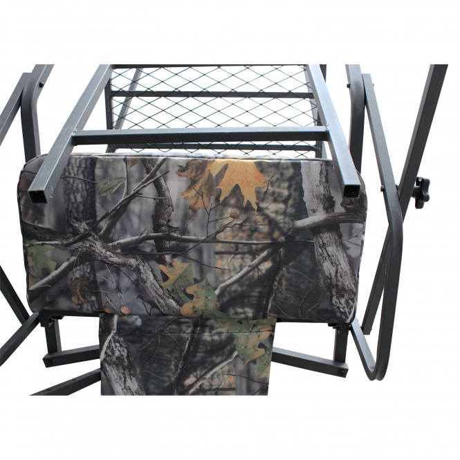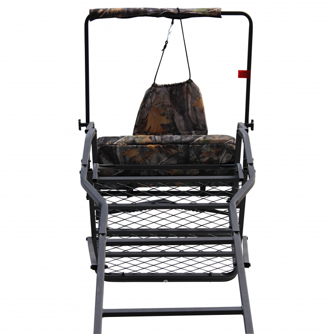 Offers hunters a stable and comfortable observation platform for hunting blinds and stalking. With a height of approx. 5.5 m, it provides an optimal view of the hunting ground. The spacious platform measuring 61 × 63.5 cm and the seat measuring approx. 66.7 × 33.7 cm with a 48.3 cm high backrest ensure long-lasting comfort while sitting. Thanks to padded armrests, a fold-up shooting rail and a fold-up footrest, hunters can remain comfortable and flexible. The load capacity of 130 kg guarantees safety, while the total weight of approx. 34 kg makes transport and assembly easy. The tree seat Hirschblick – stable, comfortable, and perfect for safe and successful hunting in the hunting ground.