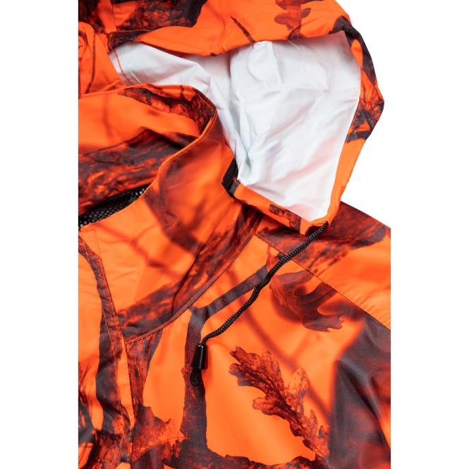 High-quality jacket for silent beat. The integrated membrane makes the jacket breathable and waterproof. With 2 front pockets and 2 breast pockets, all 4 pockets are waterproof. Stowable hood in the collar. The back is provided with a large pocket. Colour: orange/ghost camou.