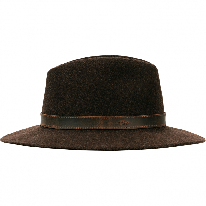 This Merino wool hat is water-repellent, breathable and easy to care for. With embossed Blaser logo on the hat band and a brass buckle. Color: brown.