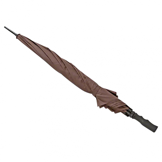 With printed Argali logo and impregnation, offers protection from the rain for two people. The black frame with fibreglass ribs opens automatically at the push of a button. Handle with soft-touch coating. Colour: brown.