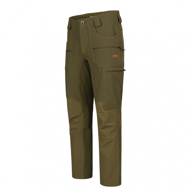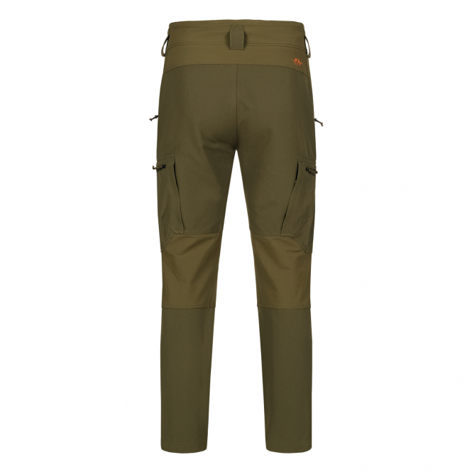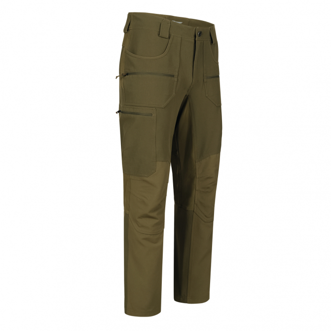 These trousers are made of single-layer, abrasion-resistant and hard-wearing Cordura® outer material with stretch inserts and lower leg reinforcements. With 2 pockets, 2 zip pockets for quick access and 2 lower leg pockets with inner mesh pocket for smartphone on the right side. Also with pre-shaped knees and 2-in-1 belt and braces loops. Colour: olive.