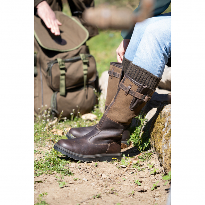 High-cut and with a side zip, which allows the shoe to be put on quickly and easily. The toe area is reinforced and the oiled leather upper stands for quality and durability. The Gritex membrane guarantees optimum breathability. The Vibram sole with excellent traction and grip is ideal for all types of terrain. Colour: brown.