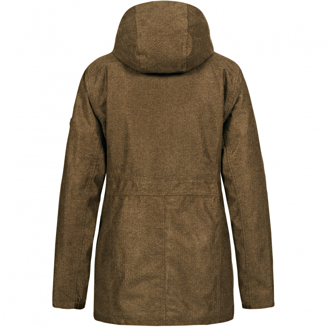 Waterproof and windproof 2-layer coat made of Blaser vintage fabric, padding 133 g in the torso area and 80 g on the sleeves. Features chest hand warmer pockets with brushed lining, 2 bottom flap pockets with snap fastener and taffeta lining for added durability, detachable hood with 2 point adjustment, suede details on collar and pocket flaps, hem adjustment for a snug fit, fleece lining at upper back, Taffeta lining in the remaining part of the jacket, Blaser acanthus label on the neck and on the sleeve. Color: brown.