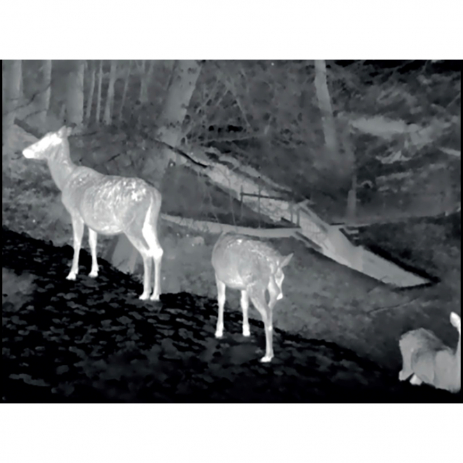 The result is a clear, unobstructed view of moving targets and from moving vehicles. The camera is designed to improve situational awareness at any time of day. It can detect people, animals and objects in complete darkness, in fog and through bright light, providing law enforcement officers, hunters and outdoor enthusiasts with reliable thermal imaging in harsh conditions. It can be used for a wide range of outdoor activities, including hunting, wildlife watching and more. Includes bag, charger, USB-C cable, 2x battery, manual, cleaning cloth, lanyard.