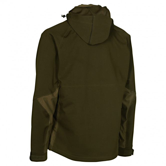 In addition, the jacket has a detachable hood, a YKK zipper, a radio pocket with antenna holder, two pockets with zippers, a breast pocket, two pockets on the front with rounded openings for easy access, a pocket with zipper, and soft contrasting fabric on the sides and forearms to minimize noise. Color: olive.
