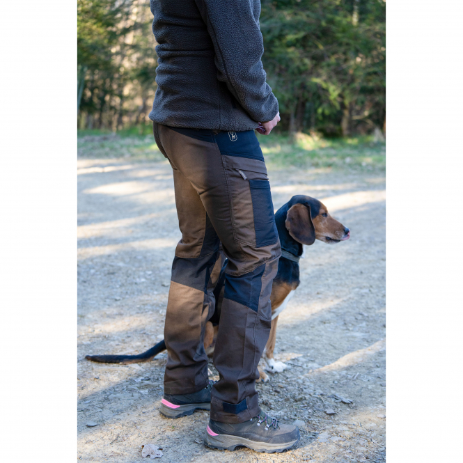 Developed exclusively for Askari with Deerhunter. A mix of the stretch material of the Deerhunter Strike trousers and the robust fabric of the well-known Rogaland series. The hunting trousers are perfect for outdoor use, both for hunting and hunting grounds. They are water-repellent and breathable. They also have movement pleats and a pre-shaped knee section to ensure excellent freedom of movement and comfort. The many pockets provide plenty of storage space. Two slash pockets, side pockets with zippers, two small pockets underneath and a back pocket. The leg ends are adjustable with Velcro and ensure an optimum fit. With small Deerhunter embroidery on the top of the right leg. Produced according to OEKO-TEX 100 standard. Color: black with contrast in brown.