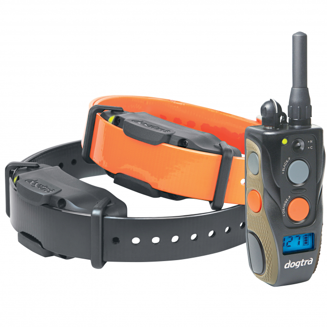 The Dogtra ARC 1202S for two dogs is the latest model from Dogtra and is the successor to the Dogtra 1212 NCP. This model was specially developed for the hunting dog from 20 kg. A new feature is the slightly rounded, waterproof collar receiver, which optimally adapts to the dog's neck thanks to its ergonomic and round shape, and discreetly disappears behind the flexible collar with pin buckle, so that it is almost invisible from the outside. The 127 impulse levels of different strengths can be infinitely adjusted to the temperament of your dog. A large, illuminated LCD display keeps you constantly informed about the set impulse levels and the battery status of the hand transmitter. Depending on the situation, the 127 impulse levels can be triggered either as a single impulse or as a continuous impulse. A separate, extra strong vibration function is also available. Of course, each dog can be controlled with a separate trigger button. The handheld transmitter can be switched off with a separate switch to avoid accidental triggering. The waterproof collar receiver is inconspicuously embedded in the collar. The supplied flexible collar with pin buckle, is suitable for dogs with a collar circumference of 30 cm to 75 cm and can be easily shortened with scissors if necessary. The 15 mm stainless steel contacts included in the delivery are specially designed for water work and are suitable for a coat length of up to 6 cm. For dogs with longer fur, we recommend our 19 mm contacts for better fur penetration. The battery-operated handheld transmitter and collar receiver are ready for immediate use after a 2-3 hour charging time.