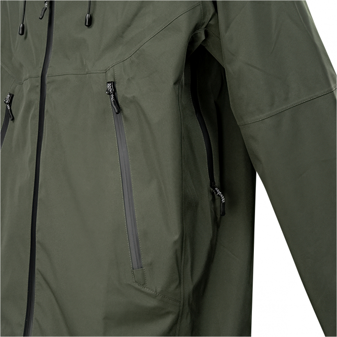 A robust jacket for high alpine hikes and multi-day hunts. This lightweight yet durable jacket is designed to withstand the harshest weather conditions such as pouring rain, wind or snow. Waterproof: 30,000 mm. Breathability: 30,000 g/m²/24h. Equipped with an internal chest pocket, heat-regulating underarm zips, adjustable hood and hem and adjustable cuffs. Colour: olive.