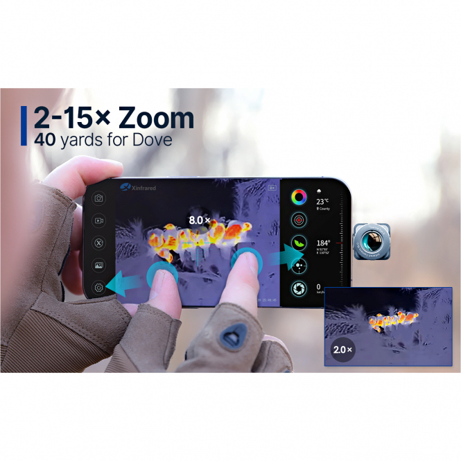 Innovative and revolutionary, for a simple and practical solution for mobile thermal imaging optics. Powerful technology in the simplest way. This camera module easily transforms the smartphone into a thermal imaging camera. Fast movements are clearly displayed thanks to the high frame rate of 50 Hz. Even small animals are clearly visible at long distances thanks to the high resolution. Supports most common smartphone systems. However, some systems have not yet been tested. Compatible with iOS version 11 or higher.