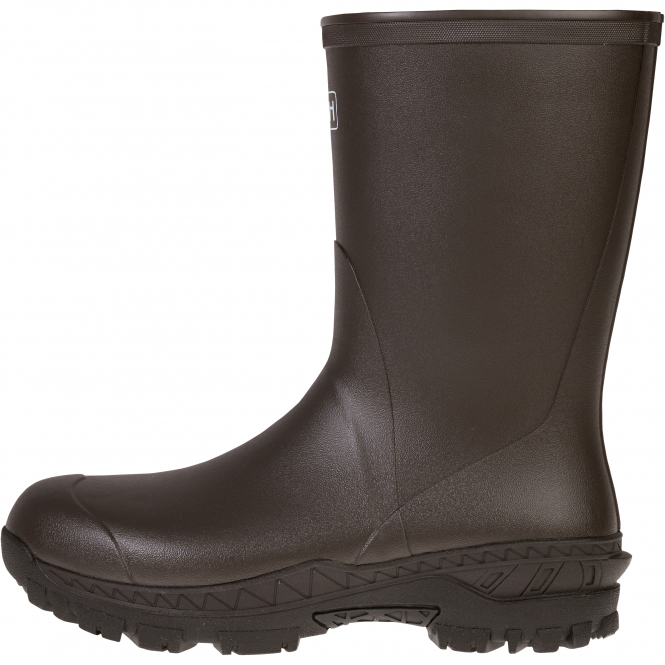 The rubber boots in the TRAKAI series are made of first-class material to achieve maximum waterproofing and comfort for the hunter. With their blend of vulcanised natural rubber and EPDM, they offer high abrasion resistance. (EPDM is a polymer characterised by its high resistance to heat and weather. The reinforcements at the heel and toe make the boots flexible and durable. The 4.5 mm thick SBR neoprene insulation on the inside provides more warmth compared to other types of lining. Dynamic comfort footbed with gel base for optimised cushioning and stability with every step. Resistant sole provides secure grip in mud without sticking.12 ́ ́ ankle boots with 4.5 mm neoprene lining. Colour: brown.