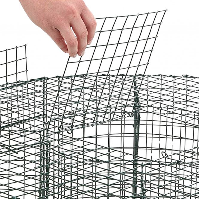 Constructed from powder-coated metal, the trap remains rustfree and weather-resistant, even after rain. With compact dimensions (diameter 75 cm, height 30 cm), it’s suitable for gardens, yards or agricultural spaces. Cleaning is easy, enabling repeated and sustainable use.