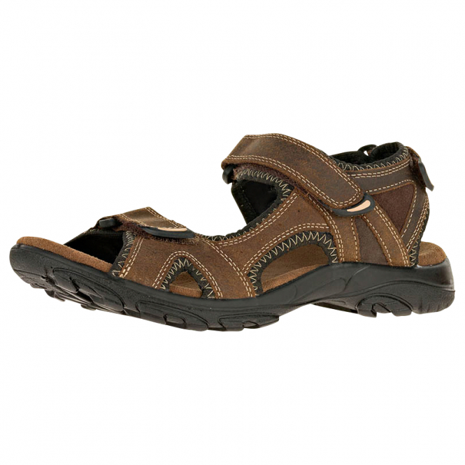 Comfortable leather sandal, which offers a comfortable wearing climate due to its breathable material. The leather footbed adapts ideally to the foot and naturally provides good wearing comfort. The sandal is equipped with three individually adjustable Velcro straps for a perfect fit. Colour: brown.