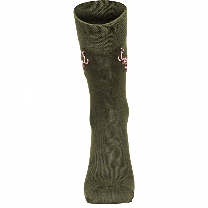 Thin trekking socks with Coolmax fibers for optimum air circulation and moisture transport. With deer motif. Colour: olive.