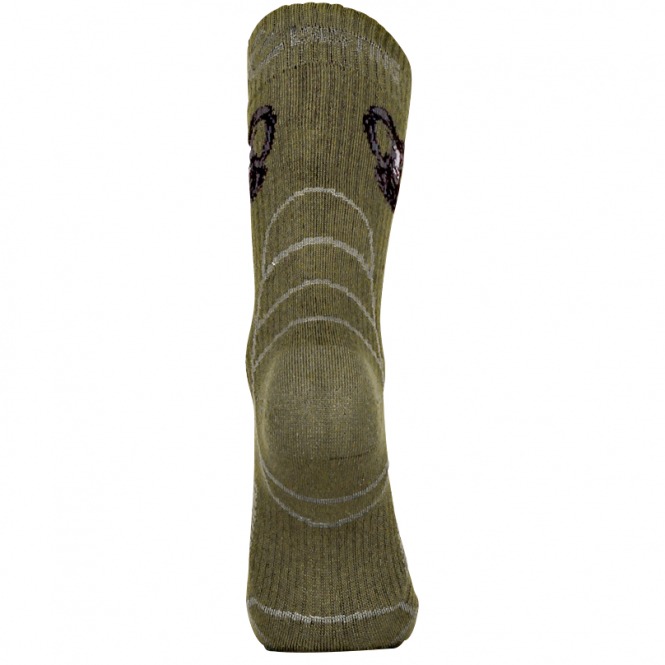 Medium thick trekking sock made of two layers knitting. Good air circulation and moisture transport. With elastic hem. Colour: olive.