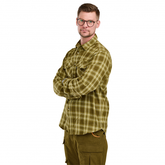 Wonderfully sturdy flannel shirt for work and leisure. Two chest pockets with flap and button closure. Front button placket.