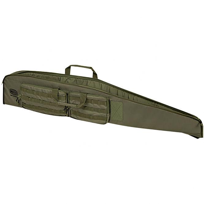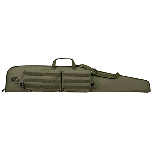 The Mauser Original holdall in the classic Mauser design is made of robust polyester and is characterised by three features: durability, a long service life and sufficient storage space. The main compartment offers enough space for your hunting weapon and protects it safely during transport. Two large pockets on the front allow you to neatly store accessories, while an internal slip pocket provides additional support. The padded carrying handle makes it comfortable to carry by hand, and a centrally placed shoulder strap with padded shoulder pad is ideal for longer distances. Lockable zips on the main and front pockets secure your equipment. The front pockets have Molle loops that securely hold additional equipment, as well as a Velcro surface for patches. A hanging loop allows for practical storage of the holdall.