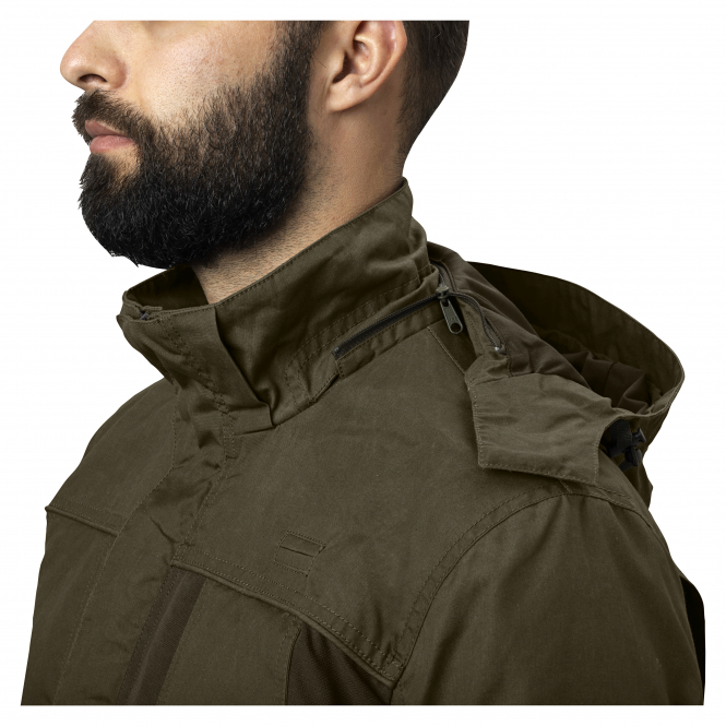 This jacket features the optimised SEETEX® membrane. The two-way zips make the jacket windproof and waterproof. The large front pocket with magnetic closure, the flap pockets and the Napoleon pocket with zip offer storage space. The hood can be removed as needed. Colour: olive.