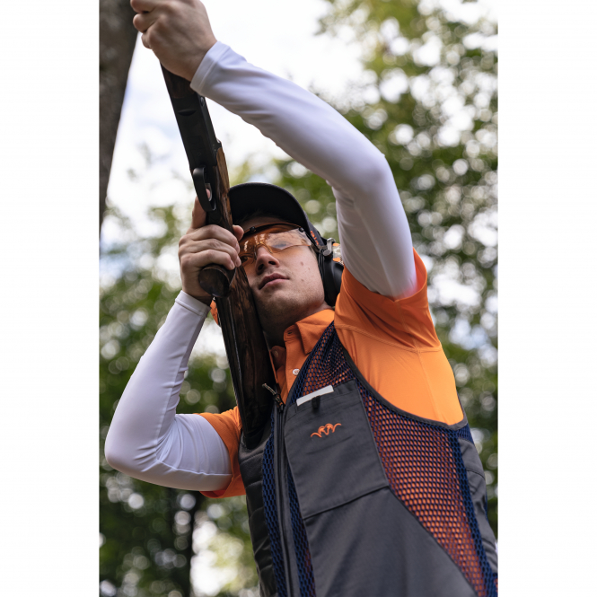 The Blaser Competition vest for right-handed shooters is the ideal choice for competitive shotgun shooting. The leather trim on the right side supports the intuitive shooting position and ensures an optimal shooting position. Thanks to the open mesh structure, the vest offers excellent breathability and full freedom of movement. The vest has two spacious front pockets, a practical breast pocket and a hare pocket on the lower back. On the back, there are two clips for attaching your competition number and a concealed waist adjustment for a perfect fit. Colour: anthracite