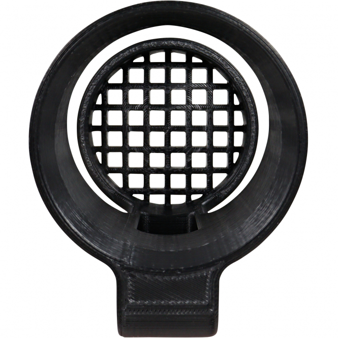 A magnetic silencer holder made of plastic. The curved base grille ensures a secure stand and first-class ventilation. The 2 keyholes for screws and the extremely strong neodymium magnet offer a versatile and reliable mounting option. Inside diameter: 52 mm. Overall height: 120 mm.