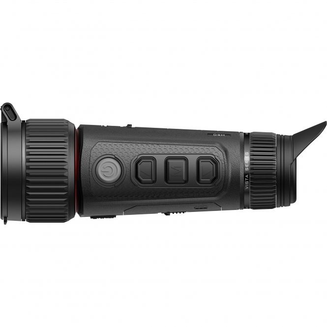 The Vista H50 is equipped with a 50 mm F0.9 lens and a 640×512 pixel thermal sensor with 12 μm pixel pitch, which enables detailed image quality even at long distances. The fourfold basic magnification and the field of view of 15 meters at a distance of 100 meters make the device particularly suitable for observations in open terrain. The detection range is up to 2600 meters.