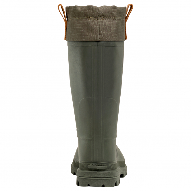 Conquer any snowy landscape with ease in these high-performance Tundra rubber boots, designed specifically for true outdoor enthusiasts. Made from lightweight, 100% waterproof synthetic rubber, these boots will keep your feet dry and comfortable. The adjustable nylon collar keeps snow out, while the boots can be slipped on and off in no time. The moisture-wicking thermo liner ensures that your feet stay comfortably warm at all times – whether you're clearing the driveway or heading out ice fishing with friends. Colour: olive.