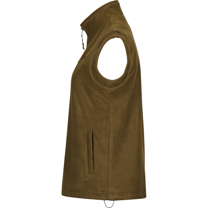 Thanks to the fleece material, the vest warms and protects against wind. The stand-up collar protects the neck from drafts and cold. Small items can be stored in the two side pockets. The elasticated cuffs can be adjusted as desired, allowing the fit and appearance to be individually customised. Colour: olive.